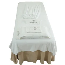 Blanco Extra suave y acogedor 100% algodón Lino masaje mesa cubierta Set 4PCs con logotipo personalizado