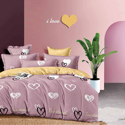 Jacquard परिवार पॉलिएस्टर बिस्तर सेट प्यार दिल मुद्रित गुलाबी पुष्प बिस्तर Duvet कवर सेट रानी आकार duvet कवर सेट
